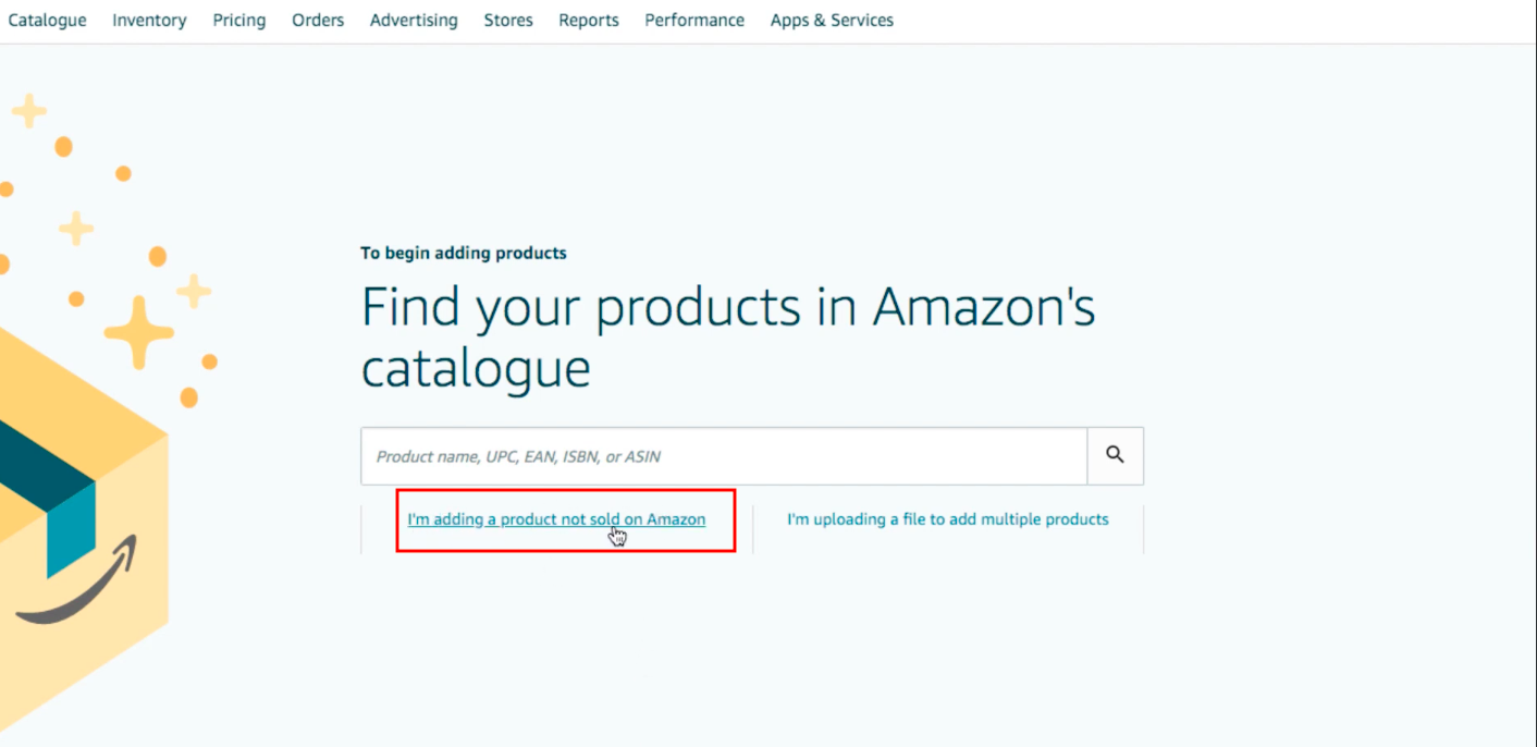 From this page, select "I'm adding a product not sold on Amazon" to create your listing.