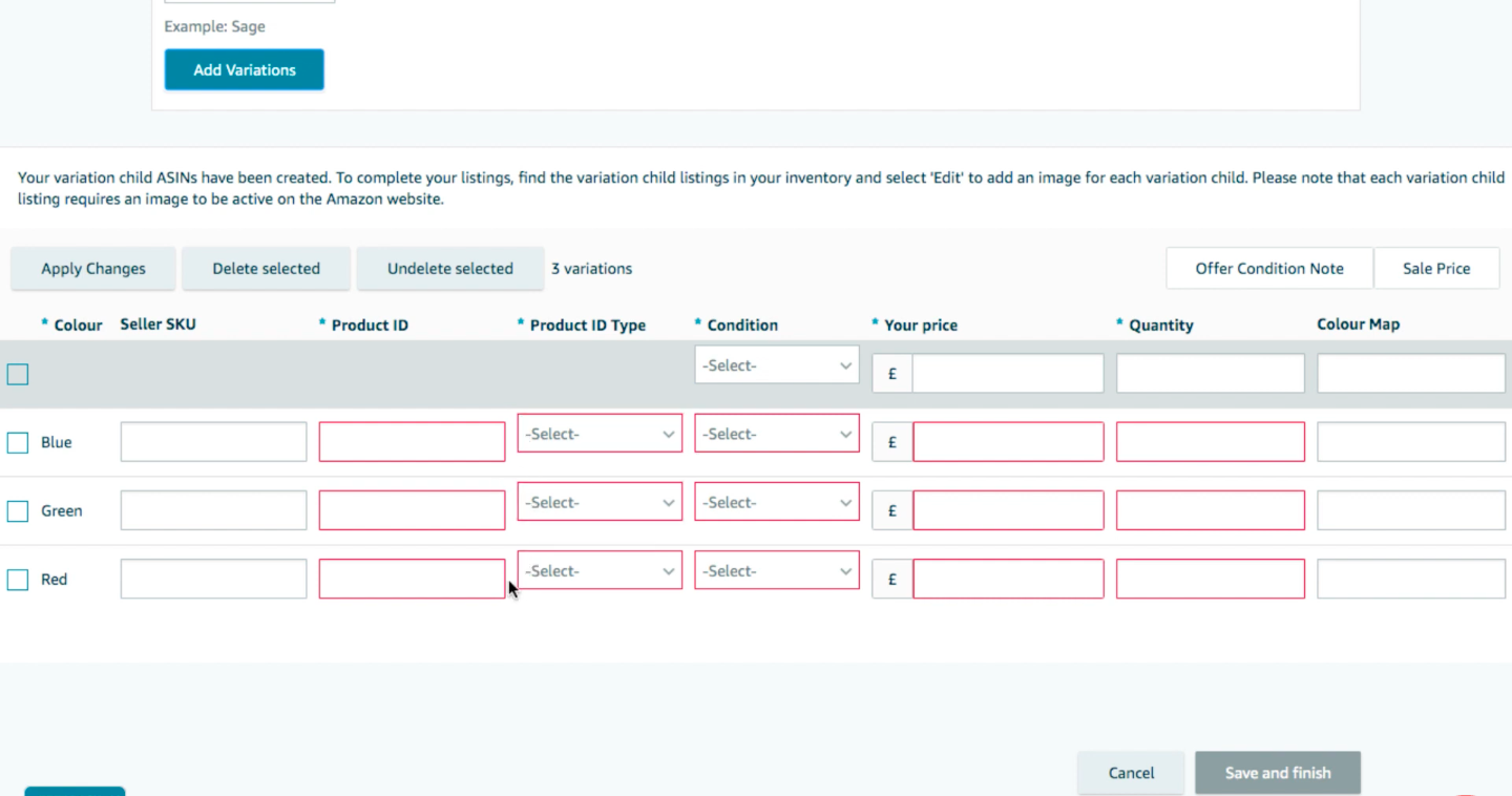 Once you've done this, you can enter all the information about your Child Listing so that it can group them together.
