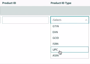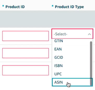 On the other side, if you're entering the different sizes of the products. Instead of the ASINs, you need to add the UPC as the "Product ID" and "UPC" as your "Product ID Type". For example, if you have three different sizes of a product, you need to have three different UPCs.